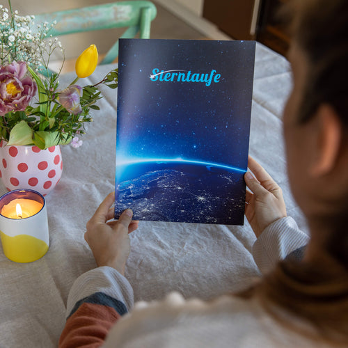 Zusätzlich enthält jedes Sterntaufen Set ein schön gestaltetes Informationsblatt mit hilfreichen Tipps und Informationen, die dir helfen, den Stern am Nachthimmel zu finden.