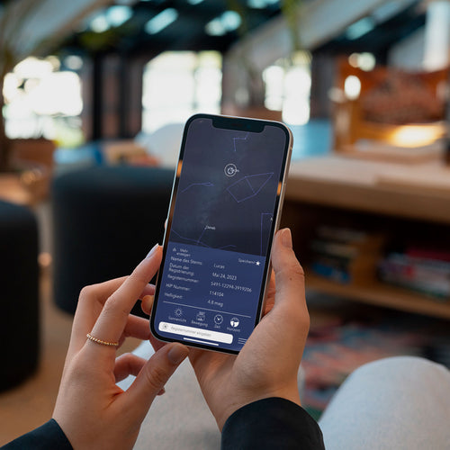 Der Zugang zu unserer App bietet ein besonderes Erlebnis bei der Suche nach deinem Stern! Dein Smartphone zeigt dir jederzeit, wo sich der getaufte Stern befindet.