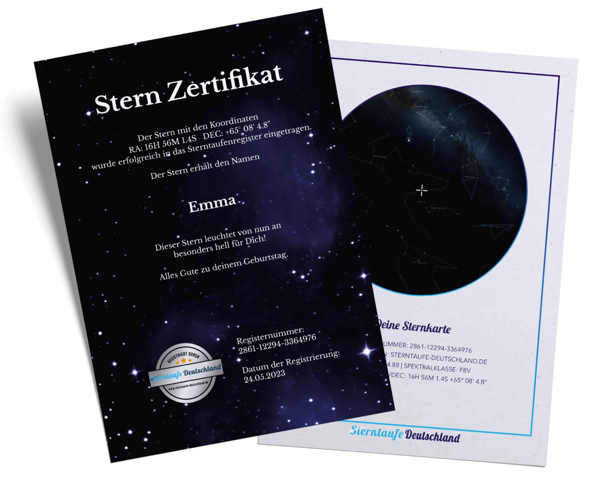 Du möchtest nicht erst einen Gutschein verschenken? Dann benenne jetzt direkt einen Stern – mit persönlicher Widmung und offiziellem Zertifikat.